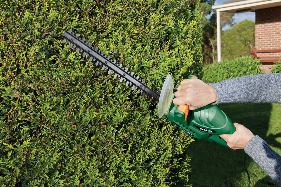 Dans la pratique, vous devrez pour la taille à l’horizontale placer l’outil au niveau indiqué, droit sur la partie de la haie concernée. Pour les parties un peu plus hautes, employez une échelle. Il ne faut jamais placer l’appareil dans une courbe au-delà de 10°.